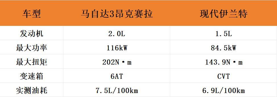 当然,澎湃的动力也是要付出代价的,从车主的实际反馈来看,马自达3昂克赛拉的综合油耗值在7.5L/100km上下,而现代伊兰特的综合油耗只有6.9L/100km。
