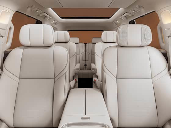第二排为零重力座椅,支持多向调节与腿托功能。第三排座椅具备一键电动折叠与加热功能,并配有独立扶手。另外,车内二/三排均配备了遮阳帘。