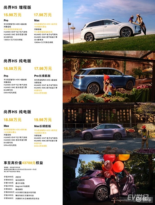 新车共推出2款增程+4款纯电共6款车型,售价15.98-19.98万元。