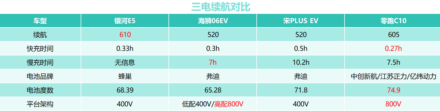 果然,群众的眼睛是雪亮的。不论是比亚迪能成为中国新能源品牌的销量代表还是零跑能成为中国新势力品牌的销量代表,背后都有技术的逻辑在支撑。但是,作为新势力品牌的零跑也显然从先天的架构上就有优势,要不然比亚迪也不会直到今年才在新上市的海狮06EV的高配车型上搭载800V架构了。而且同样是800V架构,零跑对比比亚迪还有更快的快充速度以及更长的纯电续航里程,这不仅是架构的优势,也显然能看出是作为新势力企业在面对比亚迪这样的布局更完整、车型数量多出不止一个量级的情况下,为了更好的市场竞争而释放出的更大的诚意。