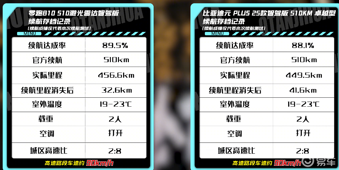 目前,零跑B10在紧凑级纯电动SUV中的市场表现非常火爆,在8月份这样的淡季,都卖出了6926辆,6月份更是卖出了14312辆,零跑B10如此火爆,当然引起了很多人的关注,不少第三方媒体都对零跑B10进行了测试和横评。比如说有媒体做的零跑B10和元PLUS续航趴窝测试,零跑B10 510激光雷达版车型的标准续航为510km,经过测试实际跑了456km,续航达成率达到了89.5%,室外温度19-23摄氏度,载重2人,空调打开,城区高速比2:8且高速维持在均速90km/h的情况下,续航达成率接近90%,这个成绩还是非常出色的,相对来说,元PLUS搭载大名鼎鼎的刀片电池,其续航达成率也只有88.1%。