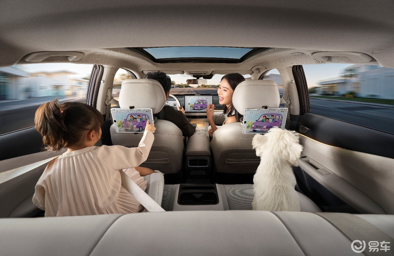17扬声器配合升降式星环散射体,打造舱内180°均衡声场;它还有自适应甜点位功能,智能识别乘员位置,自动优化声场,每人皆享最优听感。