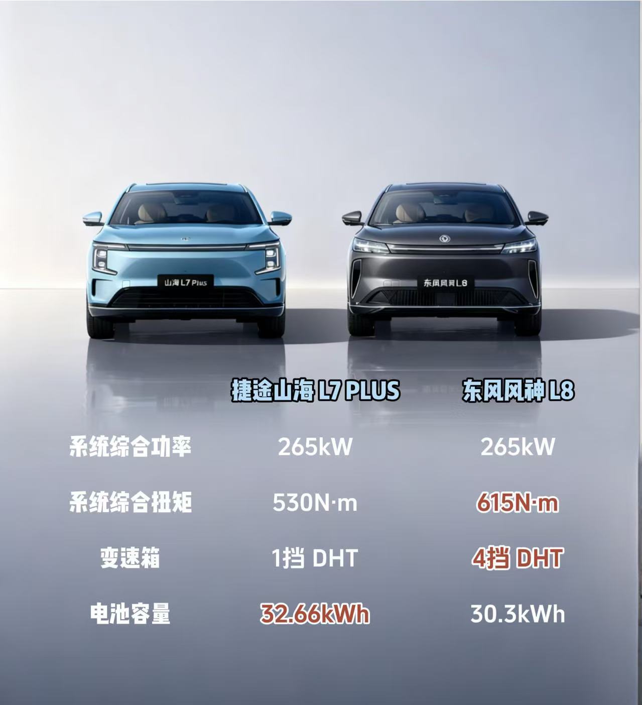 作为10-15万元级插混SUV的热门车型,捷途山海L7PLUS与东风风神L8的核心优势各有侧重,需结合家庭用户的实际需求匹配: