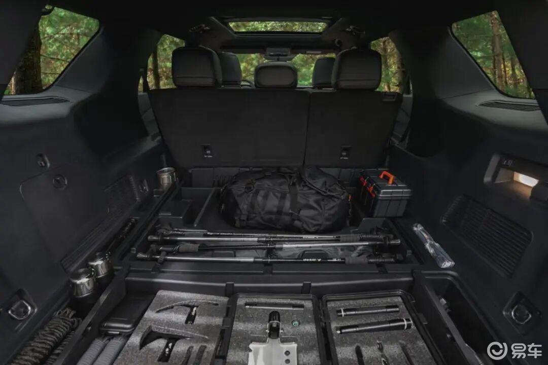 后备箱空间是昆仑穿越版的突出优势。常规状态下容积达1505L,第二排放倒后更可扩展至2487L,能够轻松容纳雪板、自行车、露营装备等大件物品。精细化储物设计包括新增置物板下隐藏储物盒,拓展近100L储存空间,后备箱储物格多达15个,最里层配有可移动挡板,实现灵活的物品管理,让各类户外装备都能有序收纳,创造了真正意义上的“魔变空间”。