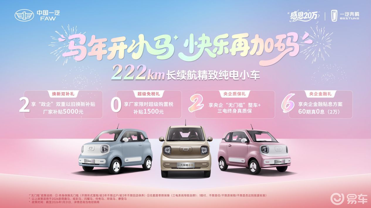 从颜值到实力,从配置到保障,一汽奔腾小马“摩登马”全方位诠释了精致纯电的出行新范式。官方指导价4.59万元,这款集复古风尚、智能科技、安全舒适与诚意福利于一身的时尚单品,无疑是马年精致出行的首选。无论是日常通勤、朋友小聚还是周末漫游,“摩登马”都将陪伴用户解锁更多质感生活场景,让每一次出行都成为悦己的美好体验。