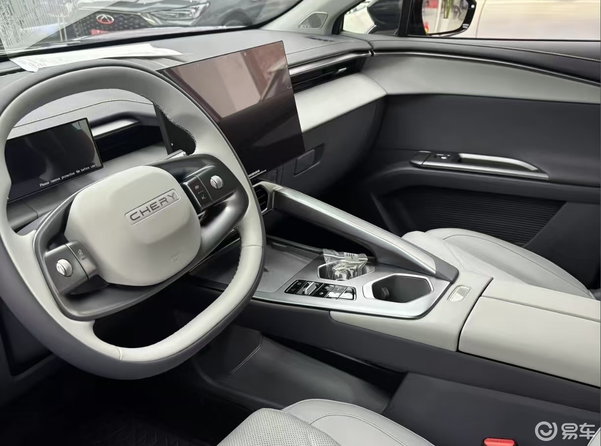 瑞虎5运动版的内饰采用环抱座舱布局,中间贯穿样式的空调出风口,配备电子怀挡、皮质多功能方向盘、8.88英寸液晶仪表、15.6英寸2K中控屏,车机内置高通骁龙8155芯片,从中配潮酷型开始提供64色氛围灯,高配潮玩型拥有索尼品牌音响。