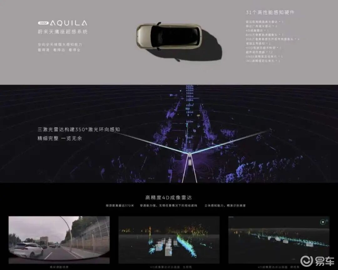 辅助驾驶也不再有短板,ES9 搭载了一套由神玑 NX9031 芯片和三颗激光雷达、4D 成像雷达等31个高性能感知硬件组成的智能辅助驾驶体系。