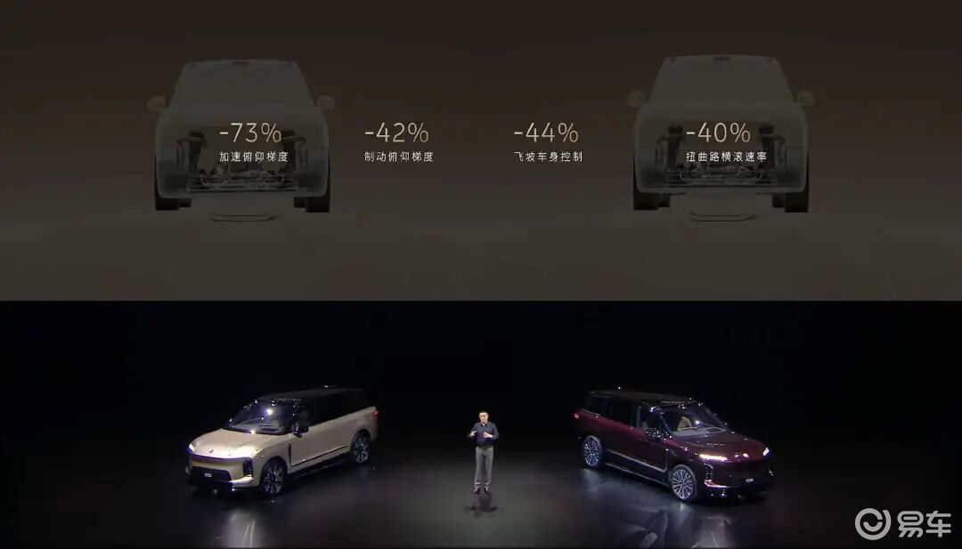 单向最⼤8.3°的主动后轮转向系统,让其成为转弯半径最⼩的全尺⼨SUV,仅5.4m,堪比蔚来最小的萤火虫,李斌还在现场放了一段蔚来ES9和萤火虫在冰上“共舞”的视频,确实灵活性不输萤火虫。