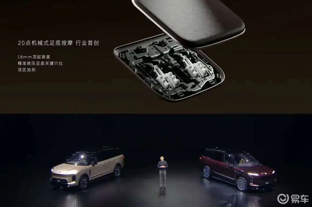 很多细节也能体现出这款车的豪华程度,比如拥有18点揉捏式按摩,22点全域敲击按摩搭配热⽯按摩,甚至还有行业首创的20 点机械式足底按摩,有18毫⽶的顶起⾼度,还⽀持双区加热。